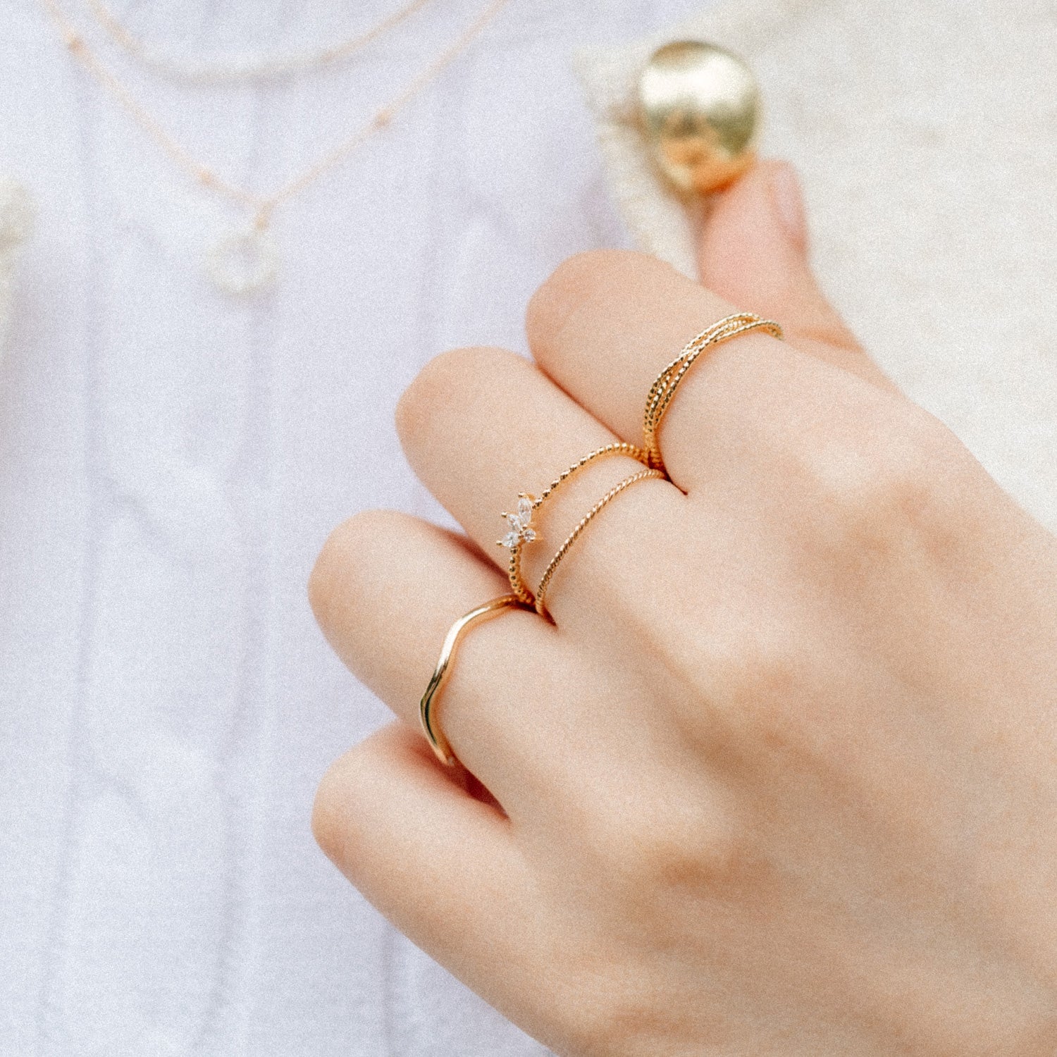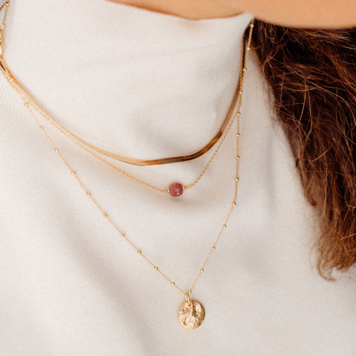 For å oppnå et gullbelegg av høy kvalitet har alle våre smykker et minimum 3 mikronmeter tykt lag av 18 karat gull. Dette optimaliserer og bevarer fargen på gull over tid, og gjør smykkene våre bestandige mot plettering fra oksidasjon.